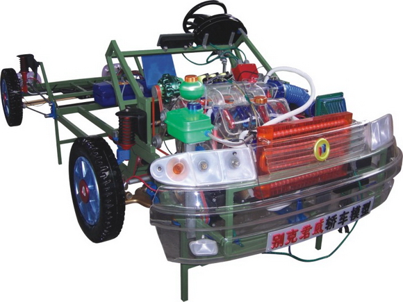 別克君威(凱越)轎車教學(xué)模型產(chǎn)品選用透明有機(jī)玻璃制作,內(nèi)部件均以硬質(zhì)塑料一次成型,用螺絲固定在金屬高溫烘漆而成的車架上。各總成部分都以壓模成形加 工,代替過(guò)去膠粘合的方法,使產(chǎn)品在強(qiáng)度上有很大提高。發(fā)動(dòng)機(jī)總成用電機(jī)驅(qū)動(dòng),在油門處設(shè)有調(diào)速裝置,能演示發(fā)動(dòng)機(jī)轉(zhuǎn)速高低。離合器分離明顯,操縱靈活,離合器外殼整體壓模而成,變速箱和各檔齒輪用各種顏色表示,換檔靈活,手制動(dòng)美觀。后橋外形壓模而成,內(nèi)中主減速、差速轉(zhuǎn)動(dòng)自如,輪轂剎蹄壓模成型,剎蹄可調(diào)節(jié),前橋輪鼓可調(diào)整,轉(zhuǎn)向裝置以及電瓶、油箱、水箱,制動(dòng)管路分布清楚一目了然。電路采用對(duì)插件前后分布,燈架、風(fēng)窗、儀表板、后燈架用透明有機(jī)玻璃壓模成整體美觀逼真。